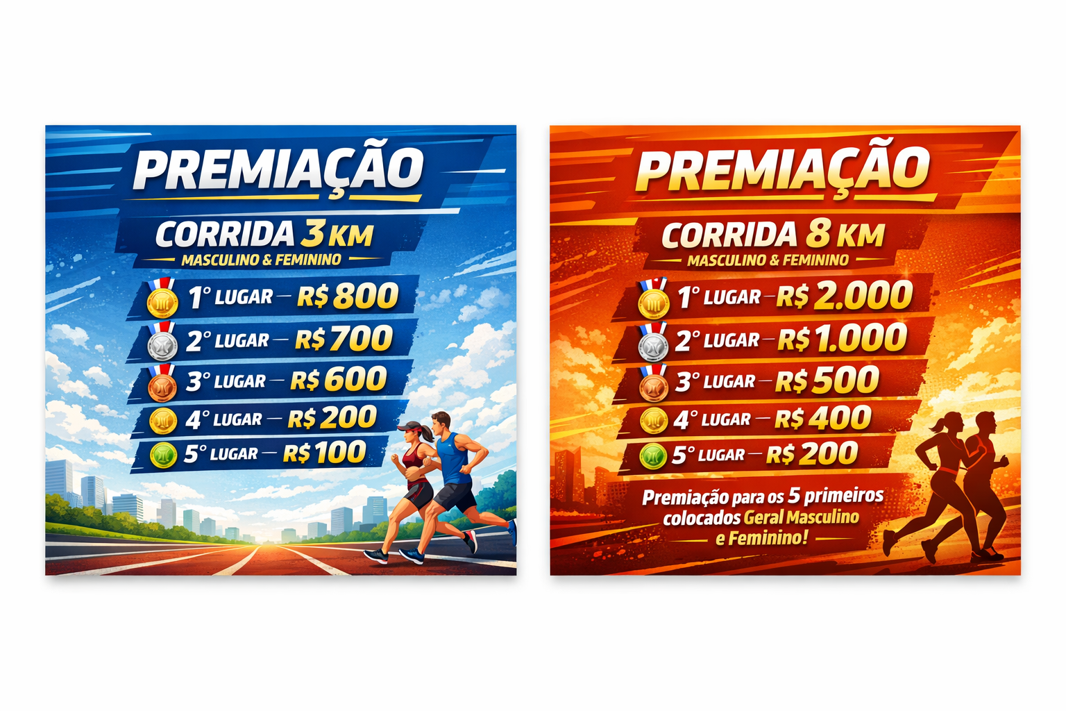 📌 A premiação será concedida aos 5 primeiros colocados gerais masculino e feminino.