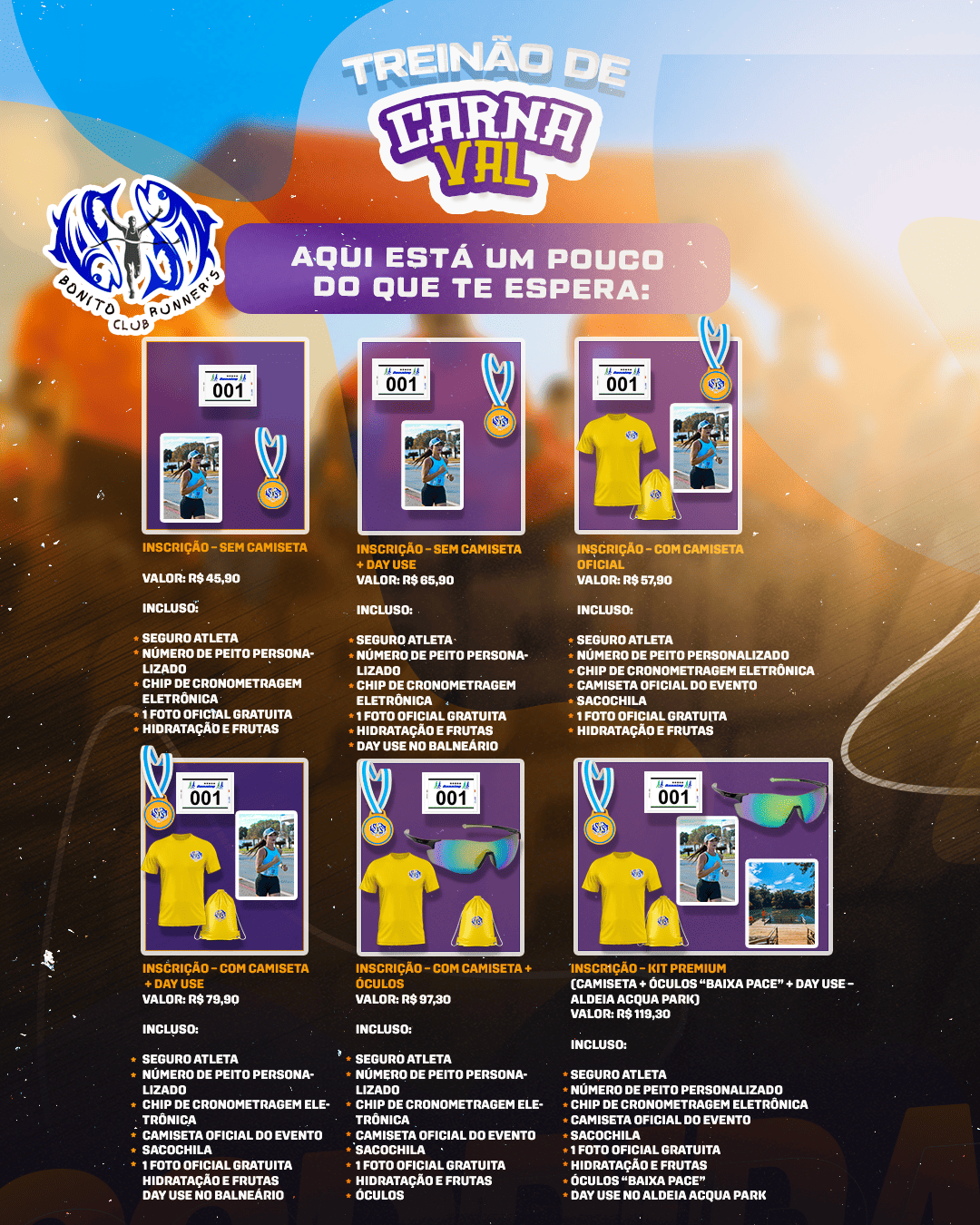 | R$ 97,30 | Inscrição – Com Camiseta + Óculos Masculino |